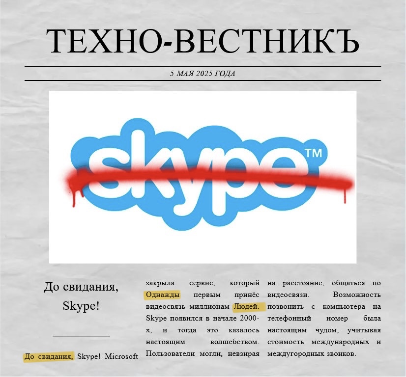 Сегодня ради интереса решился пересмотреть свой архив газет, и там нашел старую новость от 5 мая 2025 года, когда Skype объявил о своем закрытии.